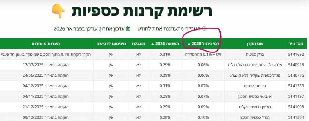 נכנסתי לעמוד קרן כספית אצל תמיר מנדובסקי ובחרתי לפי דמי הניהול הכי נמוכים.